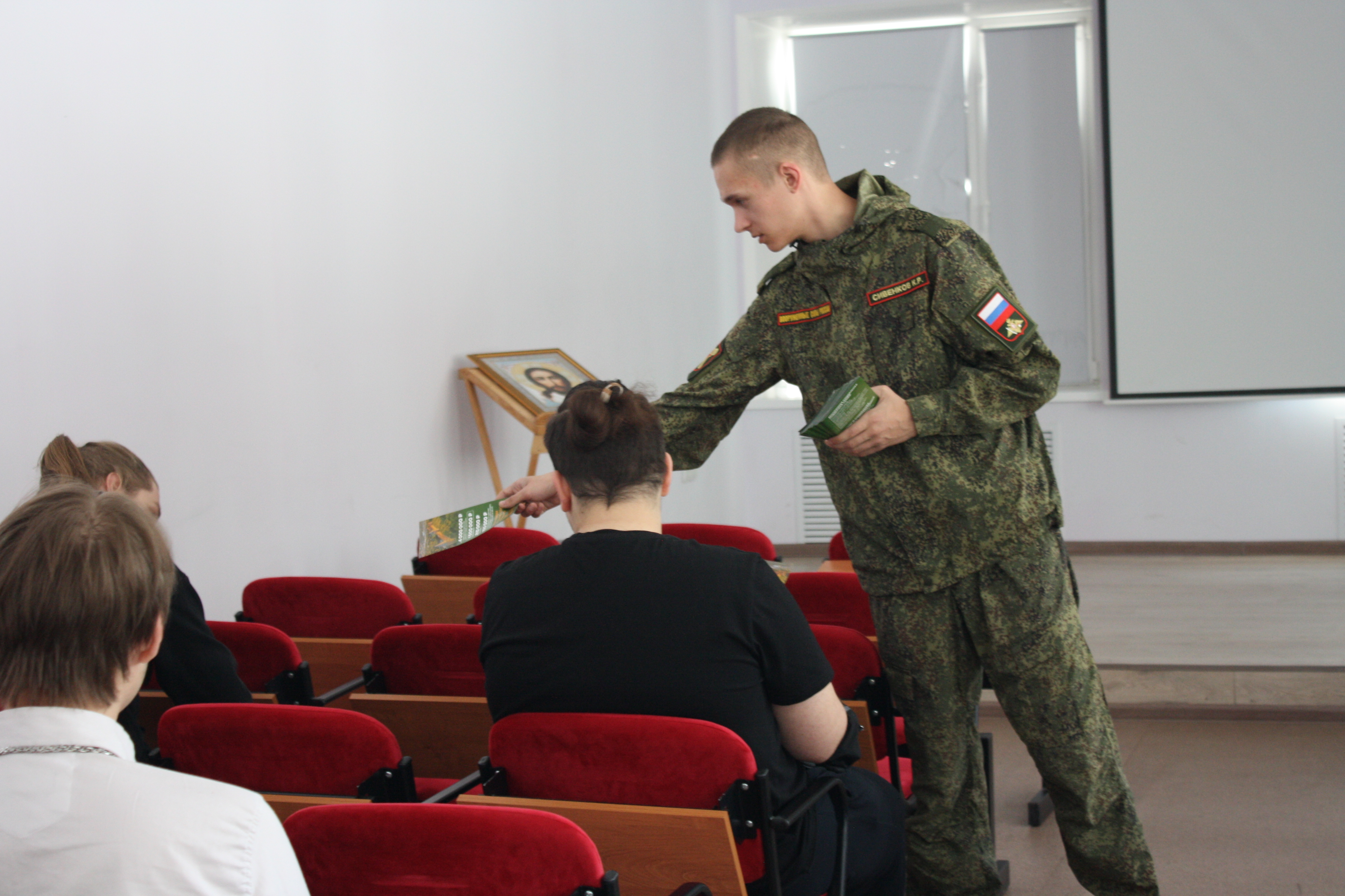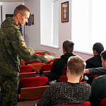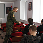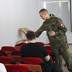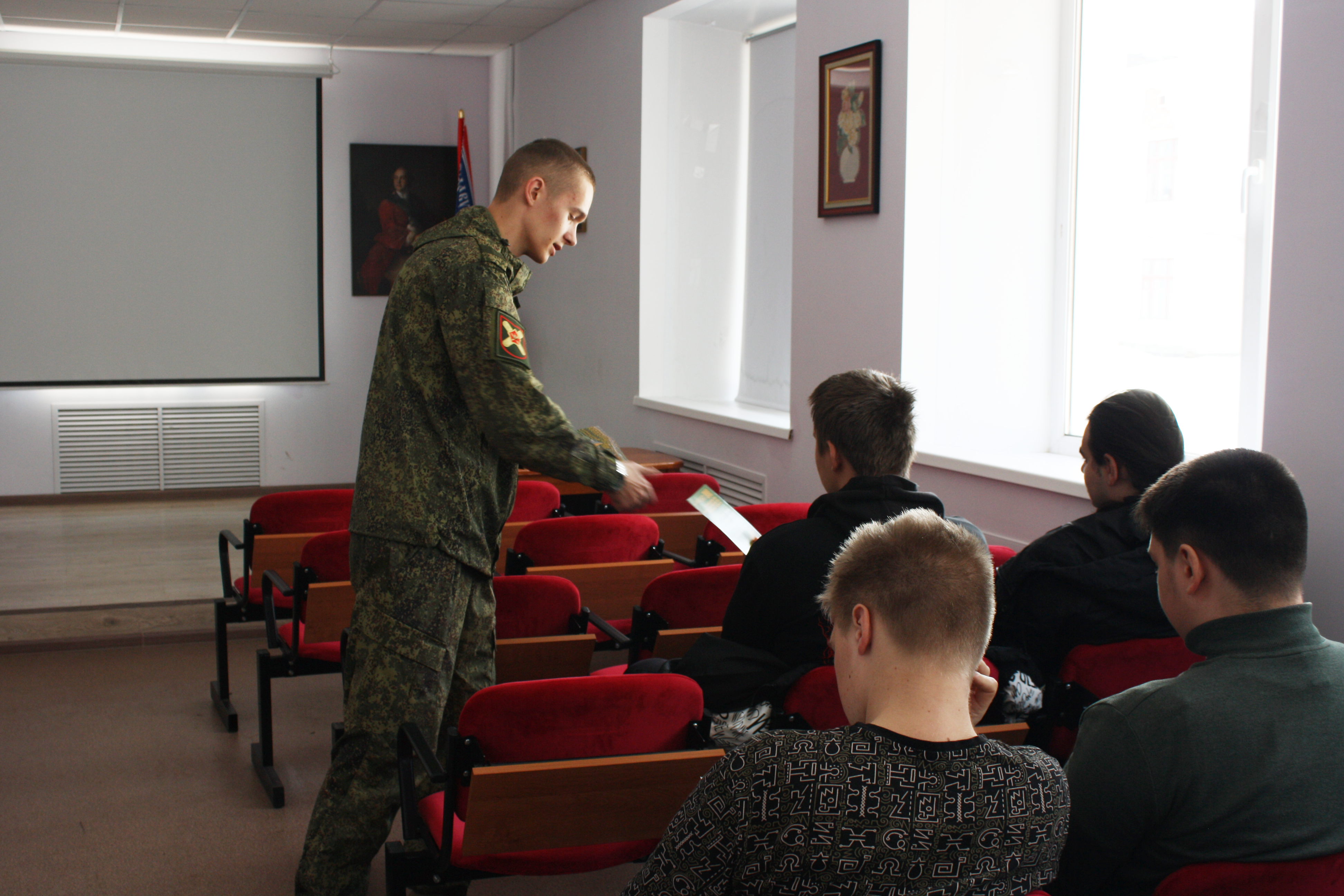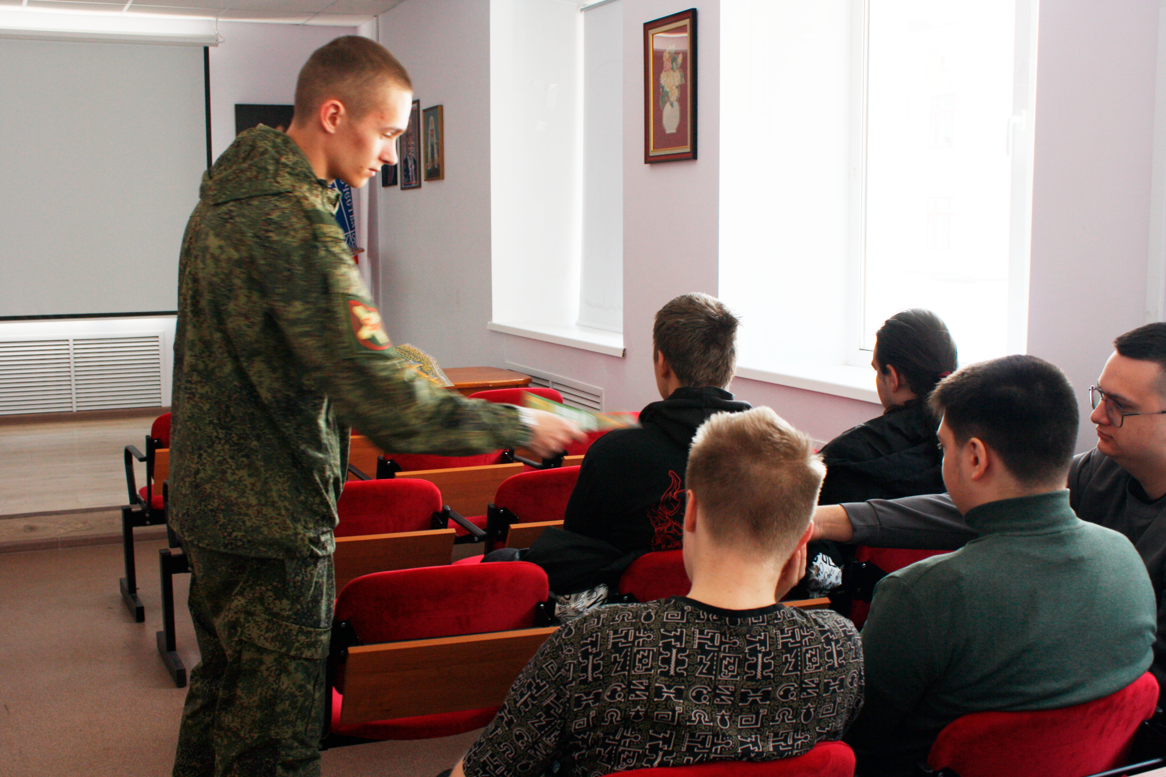 В Смоленском казачьем институте промышленных технологий и бизнеса 12 марта 2026г. прошла очередная встреча студентов с инструктором пункта отбора на военную службу по контракту - сержантом Кириллом Сивенковым.