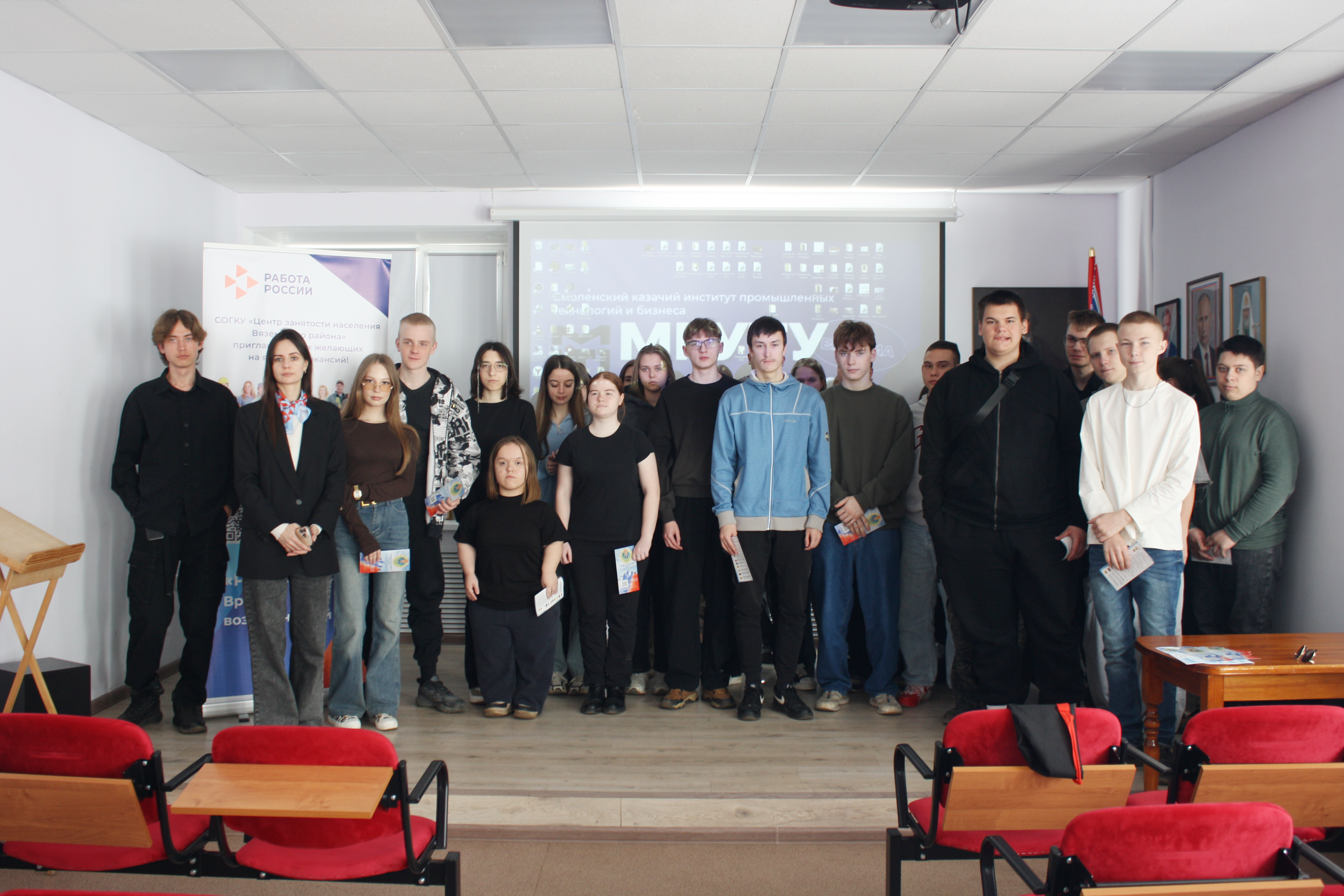 23 марта 2026 года в Смоленском казачьем институте промышленных технологий и бизнеса рамках Недели карьеры прошла профориентационная встреча с представителями Кадрового центра “Работа России” Вяземский округ.